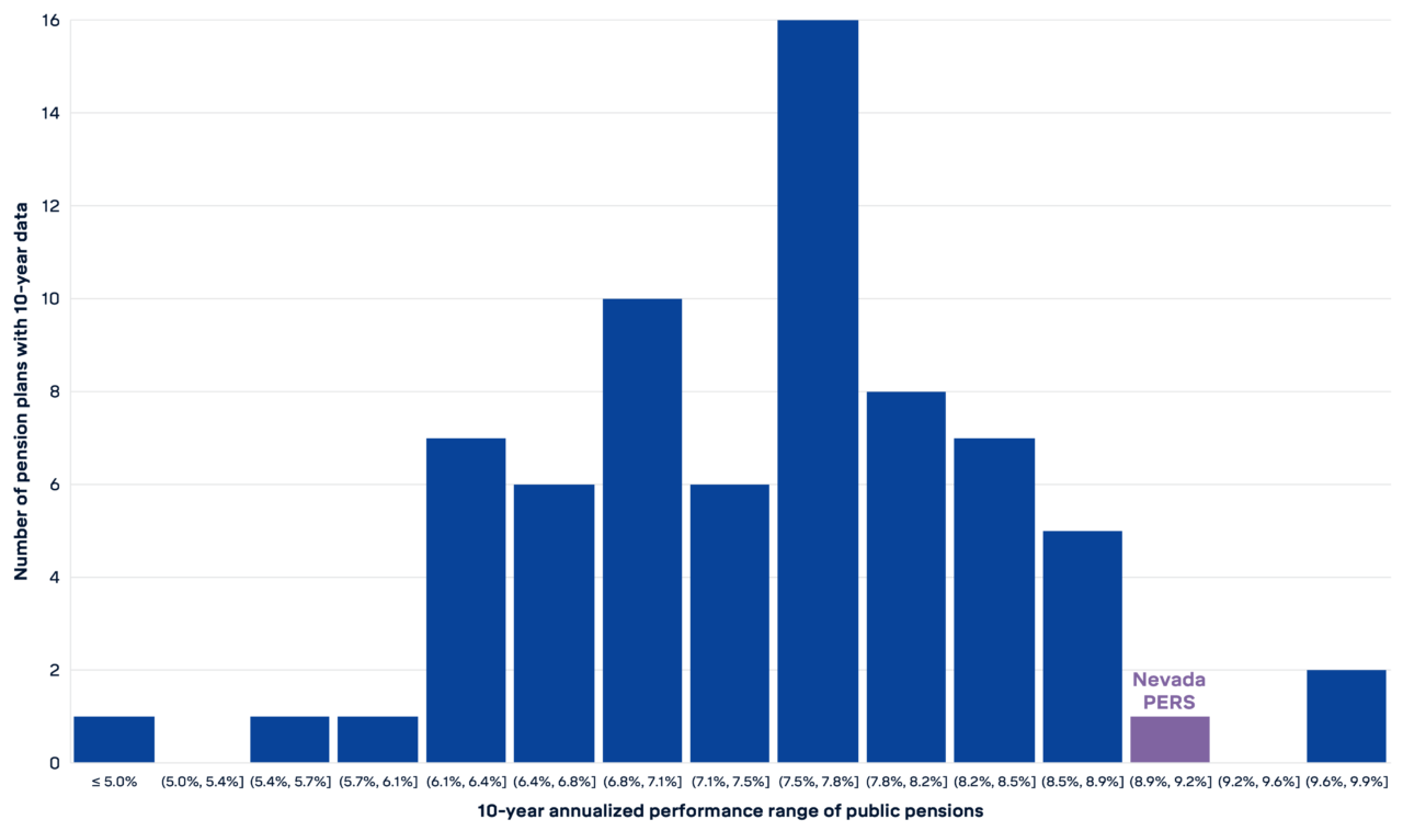 A recent tracking of the trailing 10-year performance for pension plans shows Nevada PERS near the top of its pension peers.