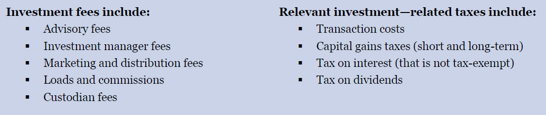 In investing, a penny saved is a penny earned. A less obvious way to increase returns is to realize that only net returns matter and focus on reducing investment costs. The two main categories of investment costs are fees and taxes.
