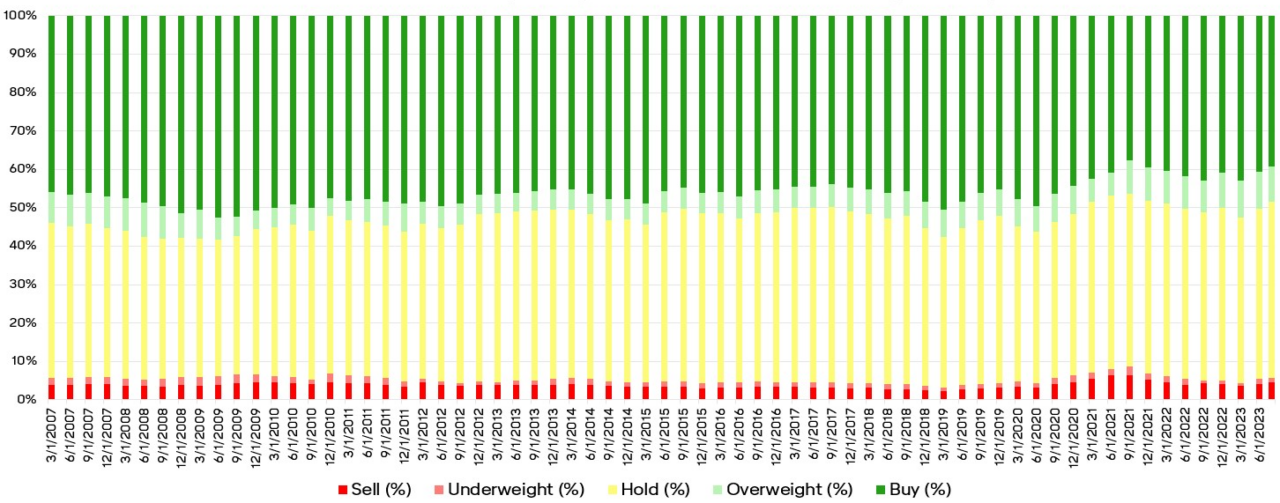 Historical Breakout of Analyst Ratings for the S&P 500 Index Constituents (2007—2023)